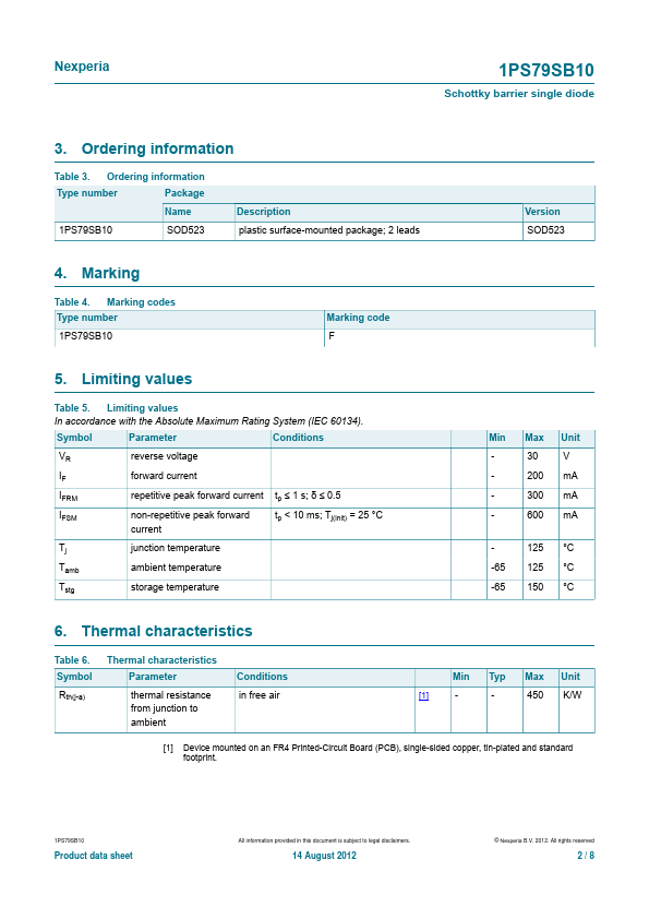 1PS79SB10 Schottky barrier single diode 14 August 2012 Product data sheet 1.Product profile 1.1 General .1PS79SB10 Features
