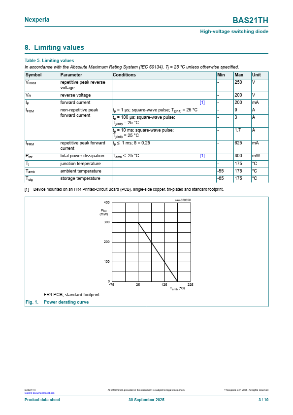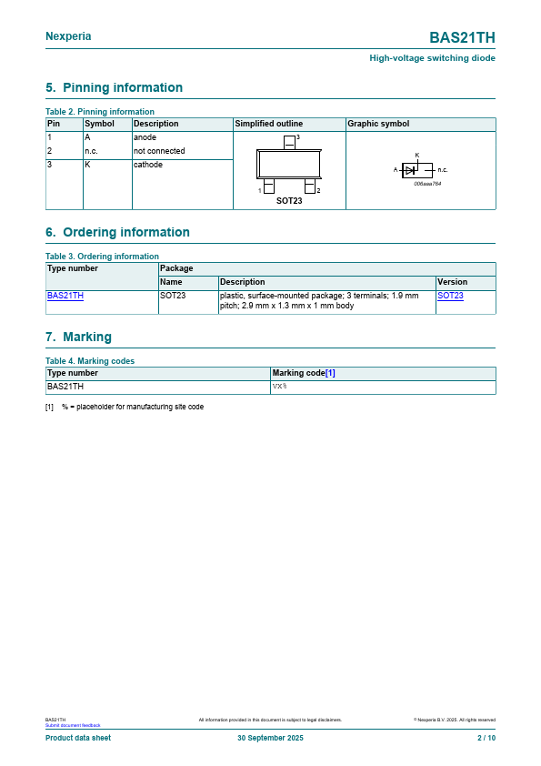 BAS21TH High-voltage switching diode 30 September 2025 Product data sheet 1.General .BAS21TH Features