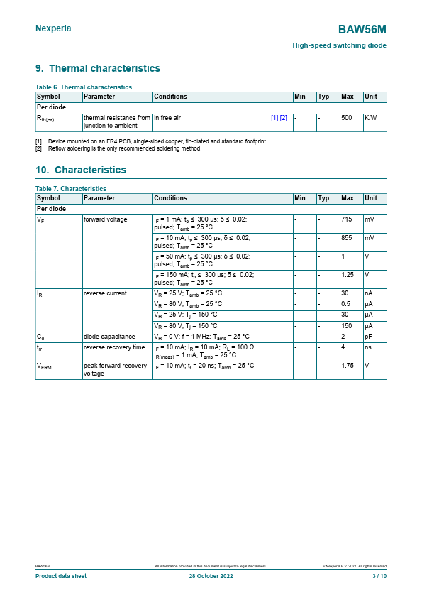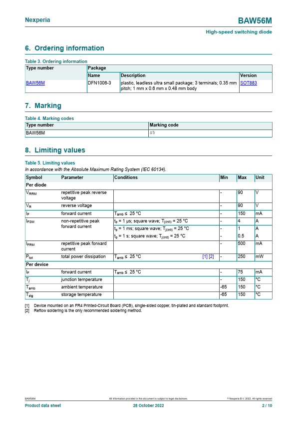 BAW56M High-speed switching diode 28 October 2022 Product data sheet 1.General .BAW56M Features