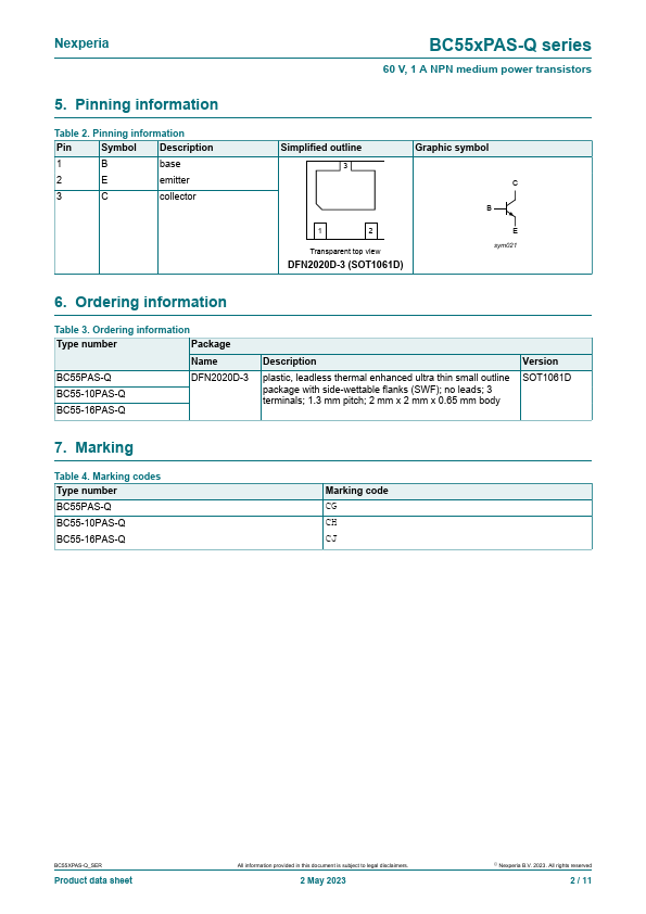 NPN medium power transistor series encapsulated in an ultra thin DFN2020D-3 (SOT1061D) leadless small Surface-Mounted Device (SMD) plastic package with medium power capability and visible and solderable side pads.