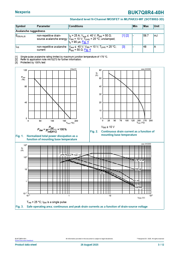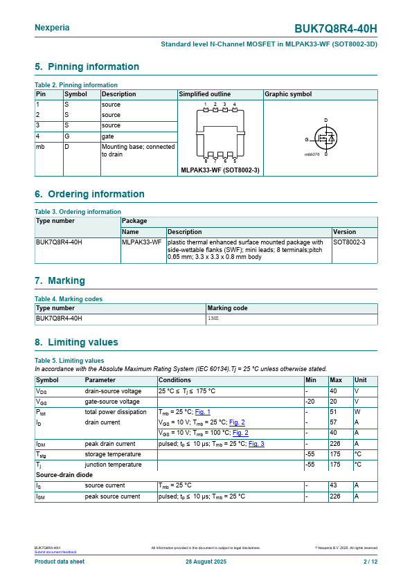 BUK7Q8R4-40H Standard level N-Channel MOSFET in MLPAK33-WF (SOT8002-3D) 28 August 2025 Product data sheet 1.General .