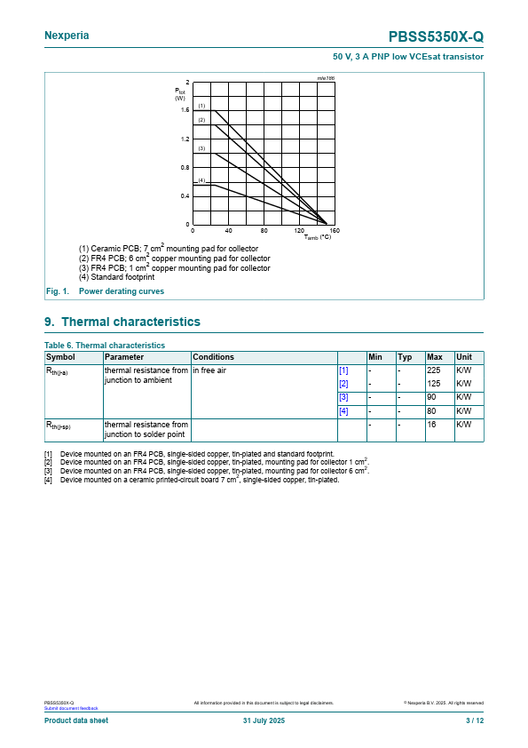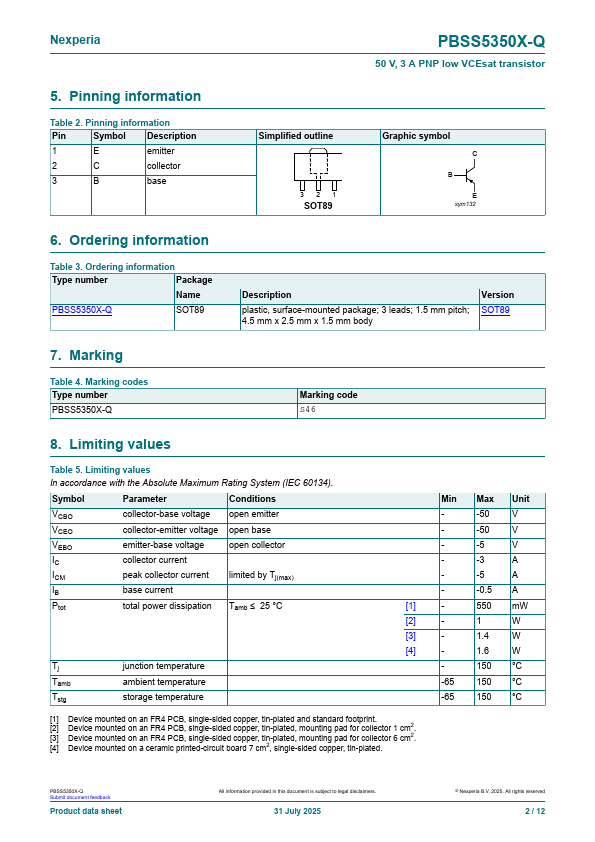 PBSS5350X-Q 50 V, 3 A PNP low VCEsat transistor 31 July 2025 Product data sheet 1.General .PBSS5350X-Q Features