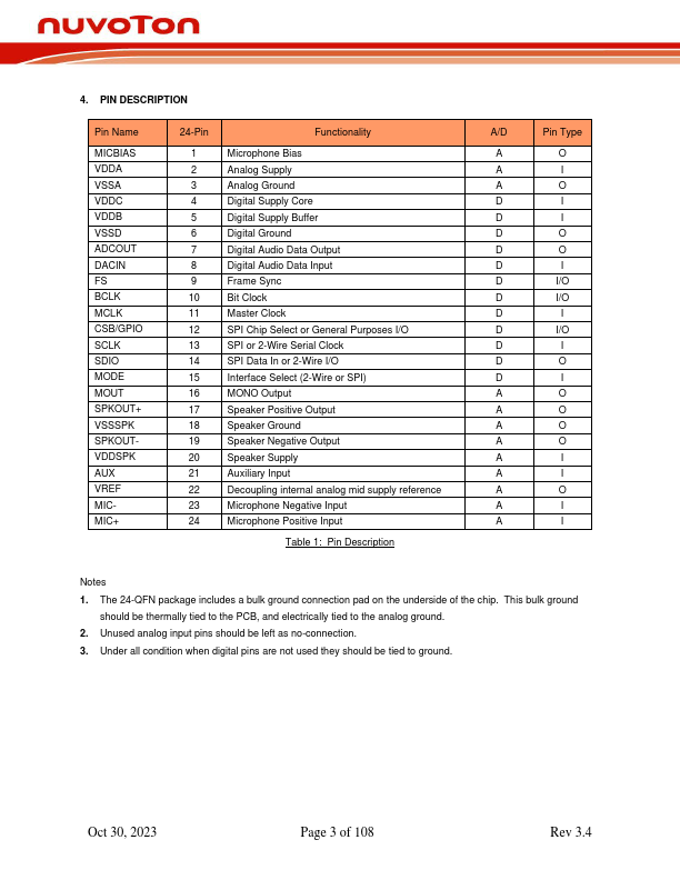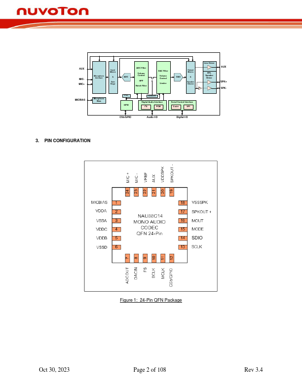 The NAU88C14 by nuvoton is a Mono Audio Codec. Below is the official datasheet preview.