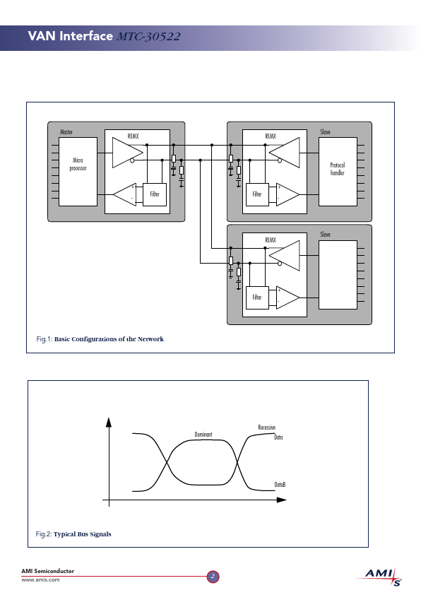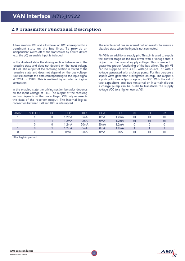 The chip is designed to be used in a car multiplexing system in bus collision mode, using the VAN protocol according to ISO standard 11519-3, at a maximum transmission speed of 160kHz.