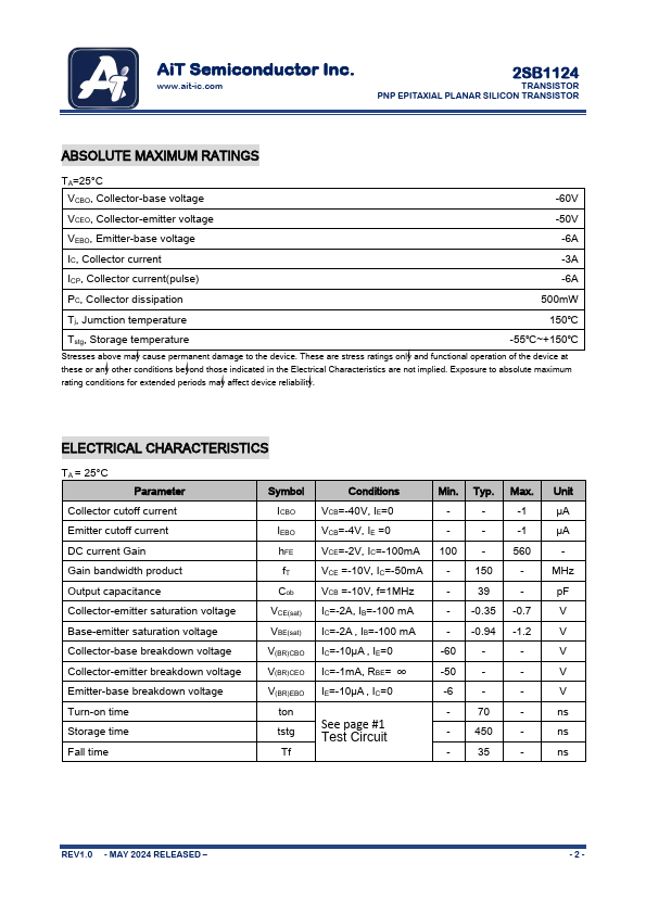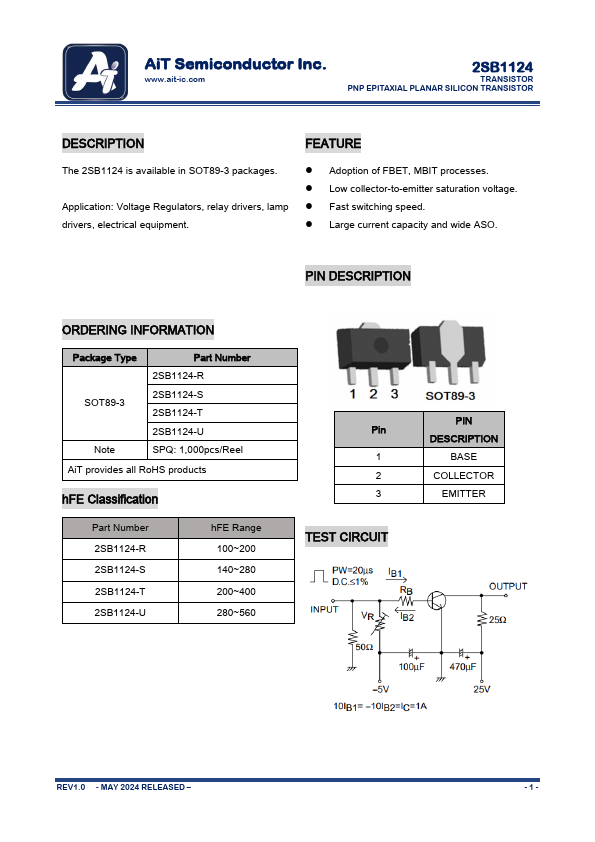 | 2SB1124 | Bipolar Transistor | ON Semiconductor |
