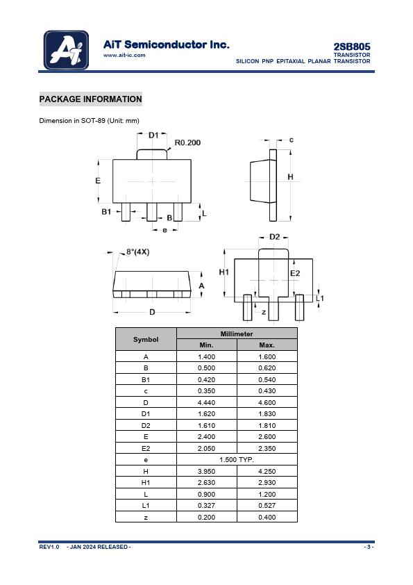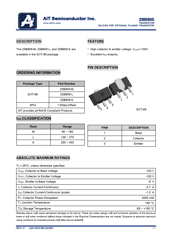 The 2SB805-M, 2SB805-L, and 2SB805-K are available in the SOT-89 package.