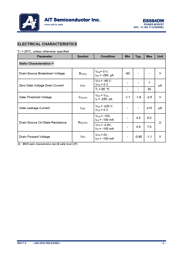 TA = 25°C, unless otherwise specified. VDSS, Drain-Source Voltage