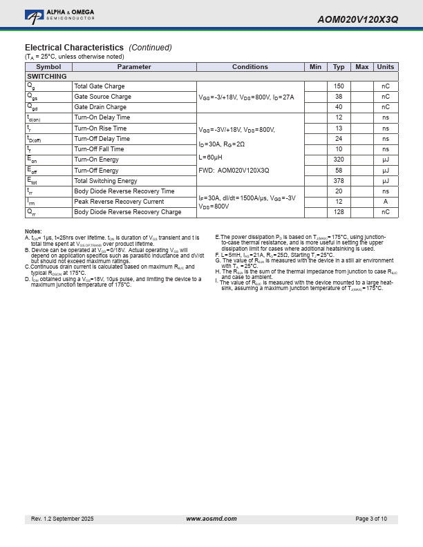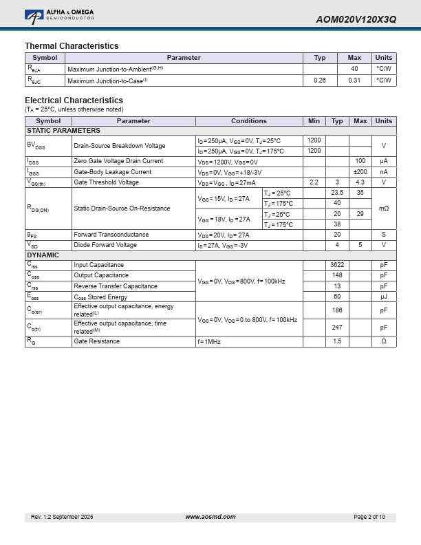 | Part number | AOM020V120X3Q |
