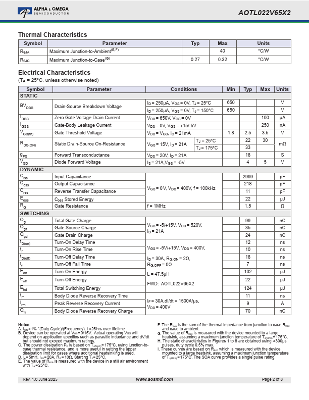 | Part number | AOTL022V65X2 |