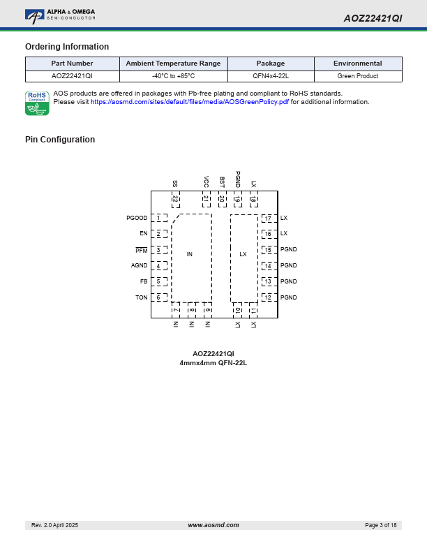 | Part number | AOZ22421QI |
