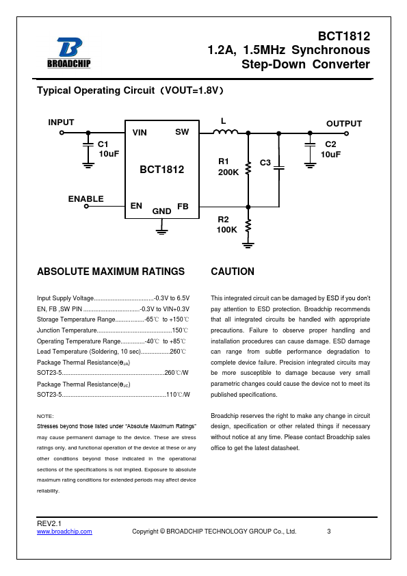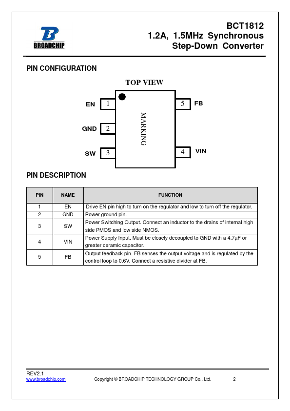 | Description | 1.2A 1.5MHz Synchronous Step-Down Converter |