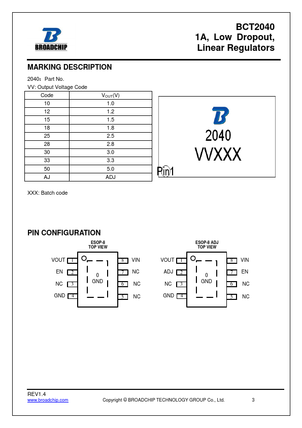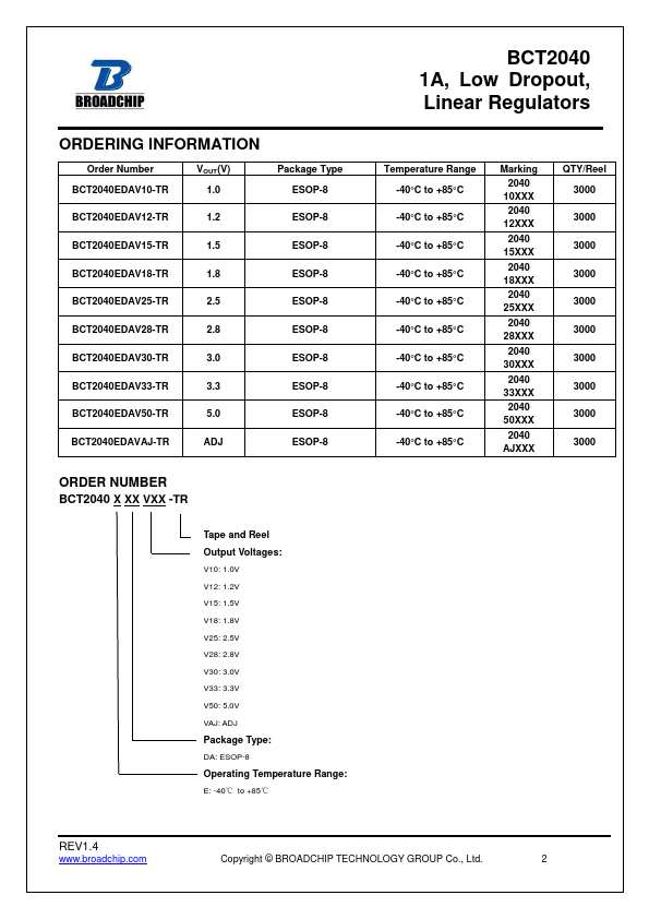 The BCT2040 series low-power, low-noise, low-dropout, CMOS linear voltage regulators operate from a 2.2V to 6.0V input voltage.