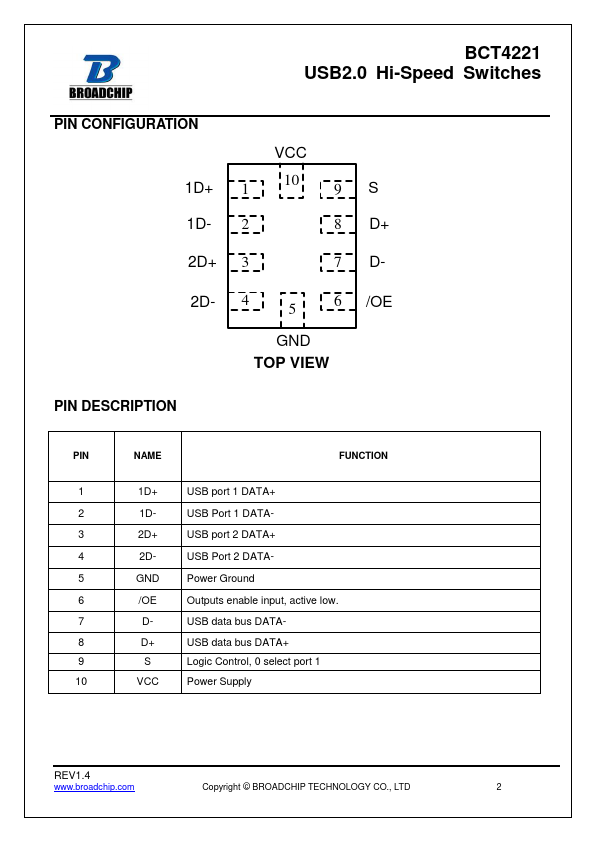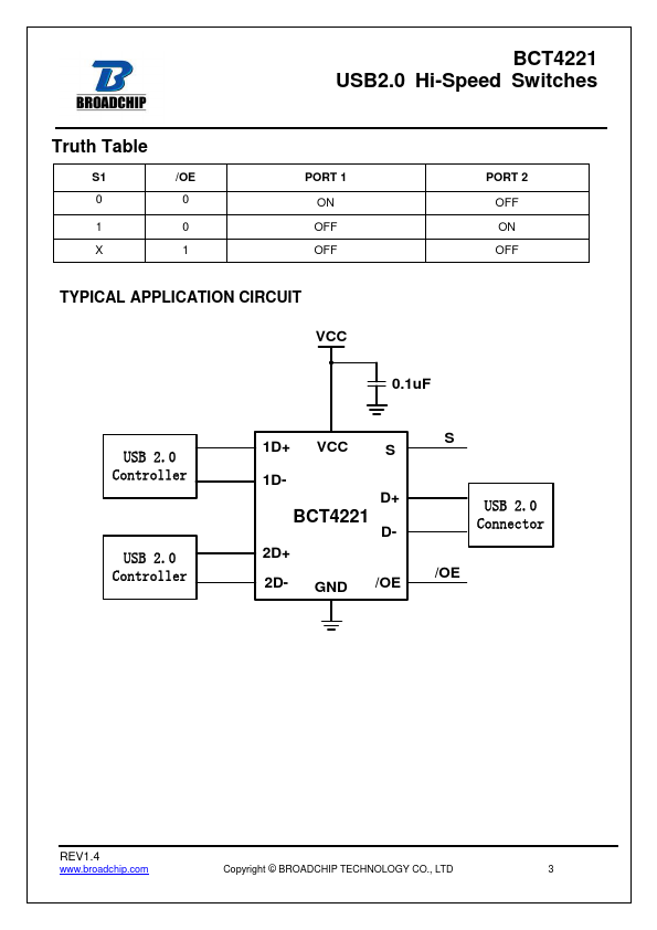 The BCT4221 is a high bandwidth, fast double-pole double-throw (DPDT) analog switch.