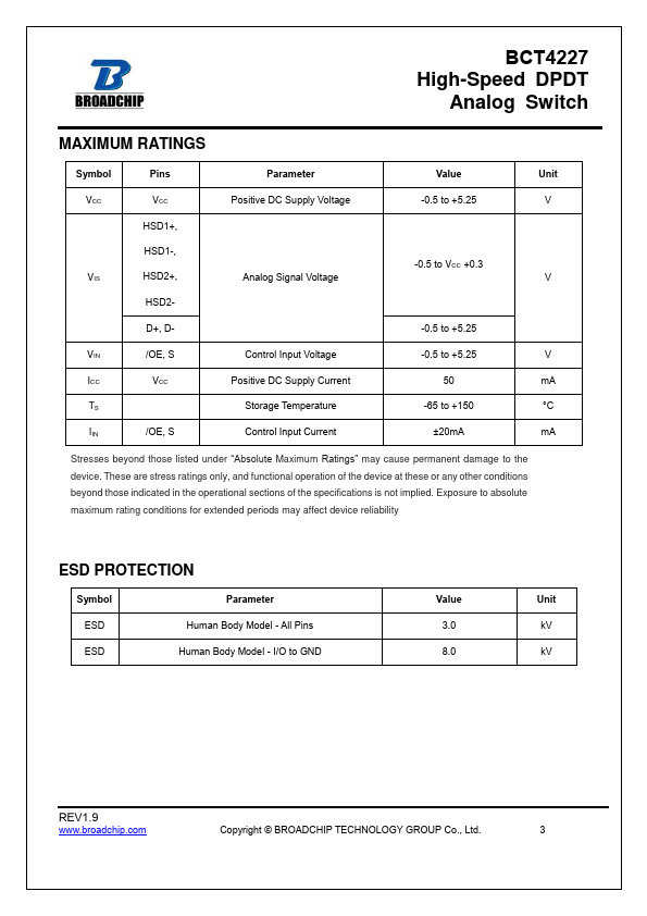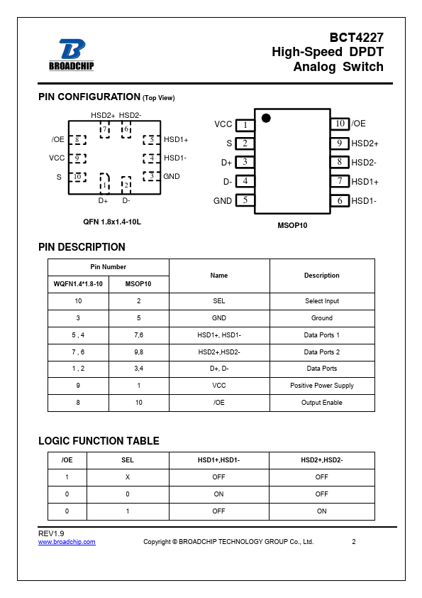 The BCT4227 is a high bandwidth, fast double-pole double-throw (DPDT) analog switch.