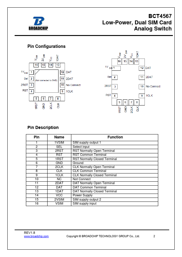 | Description | Dual SIM Card Analog Switch |
