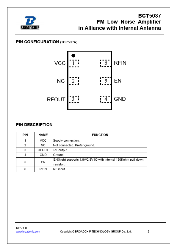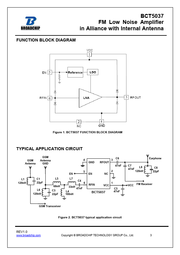 BCT5037 is a Low-Noise-Amplifier (LNA), without earphone or telescopic antenna, re-using GSM antenna to receive FM-radio signal.