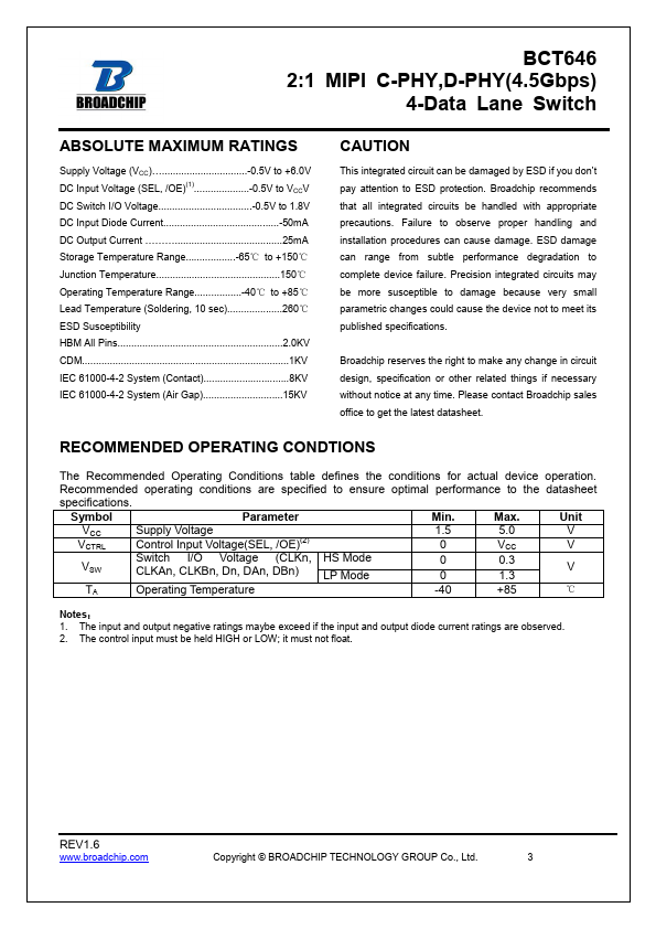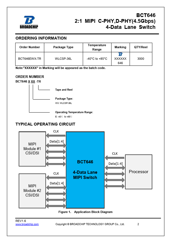 The BCT646 is a four-data-lane MIPI D-PHY, C-PHY switch.