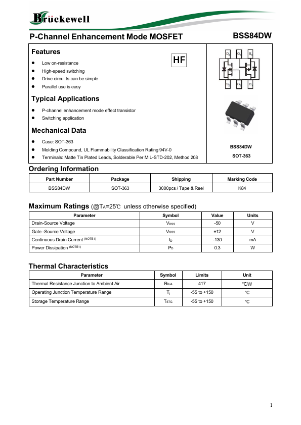 l Case: SOT-363 l Molding Compound, UL Flammability Classification Rating 94V-0 l Terminals: Matte Tin Plated Leads, Solderable Per MIL-STD-202, Method 208