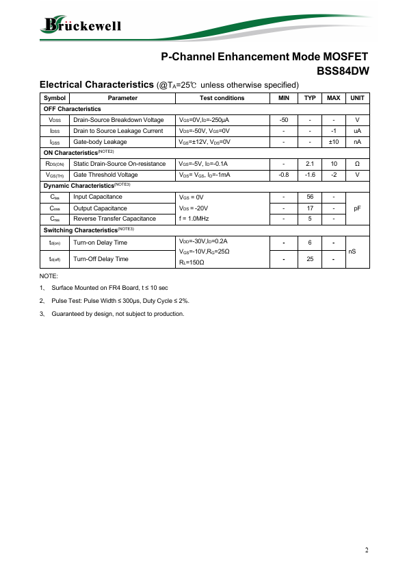 Gate -Source Voltage Continuous Drain Current (NOTE1) Power Dissipation (NOTE1)