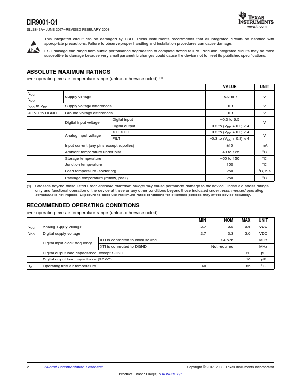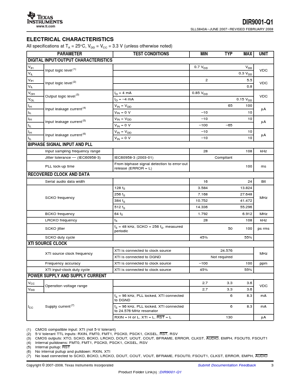 | Description | 96-kHz 24-Bit Digital Audio Interface Receiver |