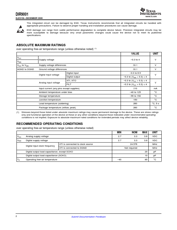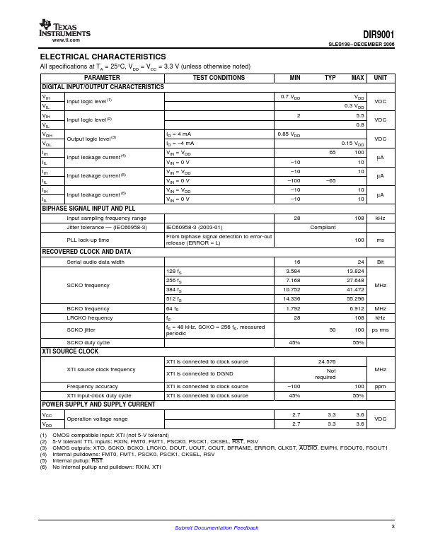 The DIR9001 is a digital audio interface receiver that can receive a 28-kHz to 108-kHz samplingfrequency, 24-bit-data-word, biphase-encoded signal.