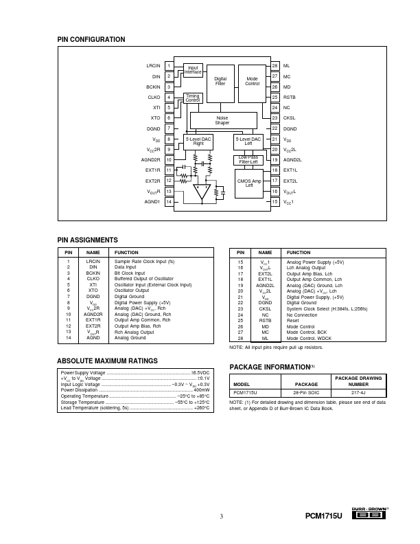 | Part number | PCM1715U |