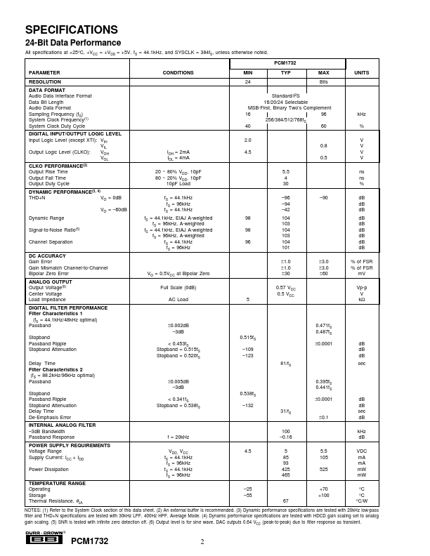 q INPUT AUDIO DATA WORD: 16-, 20-, 24-Bit q SAMPLING FREQUENCY (fs): 16kHz - 96kHz q SYSTEM CLOCK: 256, 384, 512, 768fS q HIGH PERFORMANCE: