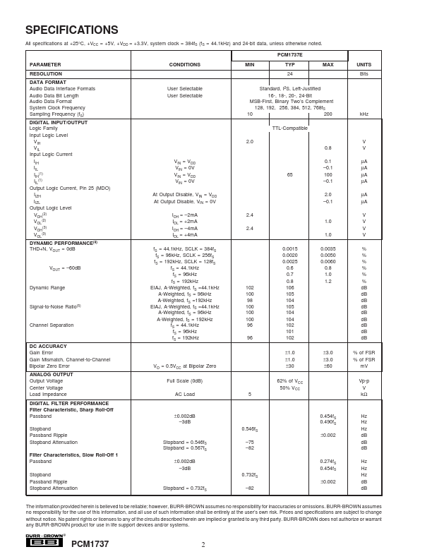 q ANALOG PERFORMANCE (VCC = +5V): Dynamic Range: 106dB typ SNR: 106dB typ THD+N: 0.0015% typ Full-Scale Output: 3.1Vp-p typ