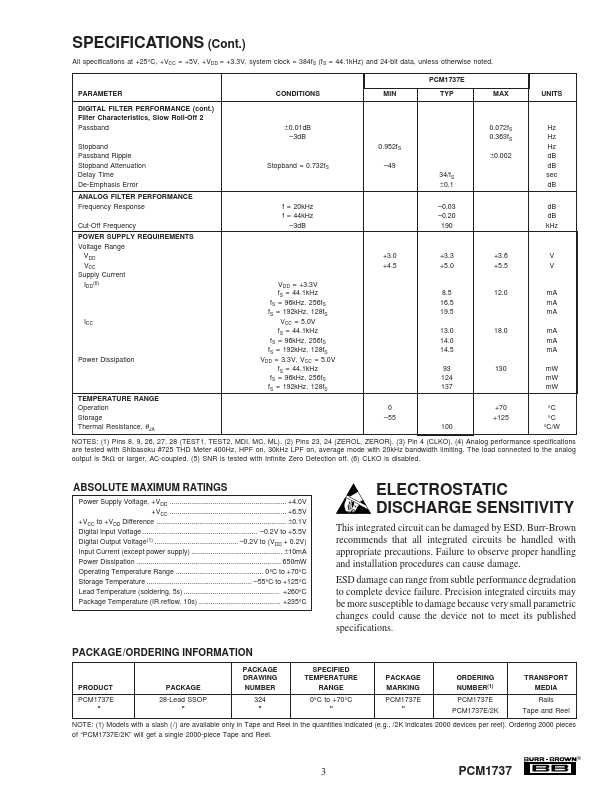 q 4x/8x OVERSAMPLING DIGITAL FILTER: Passband: 0.454fS Stopband: 0.546fS Stopband Attenuation: –82dB Passband Ripple: ±0.002dB