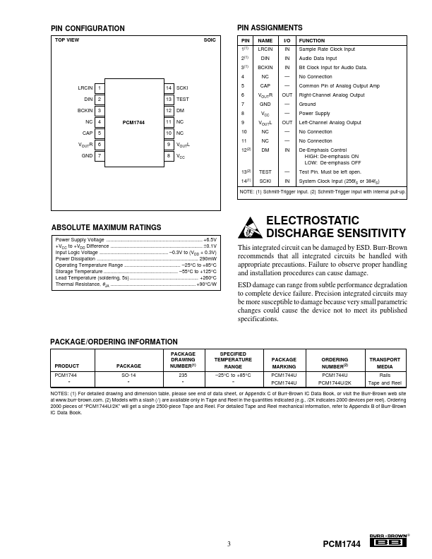 The PCM1744 is a complete low cost stereo audio digital-to-analog converter (DAC), operating off of a 256fS or 384fS system clock.