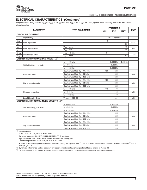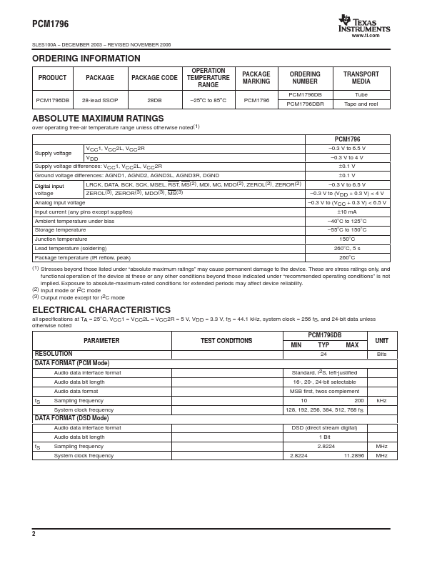 The PCM1796 is a monolithic CMOS integrated circuit that includes stereo digital-to-analog converters and support circuitry in a small 28-lead SSOP package.