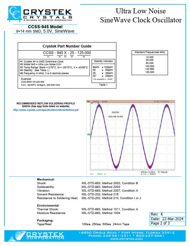 | Description | Ultra Low Noise SineWave Clock Oscillator |