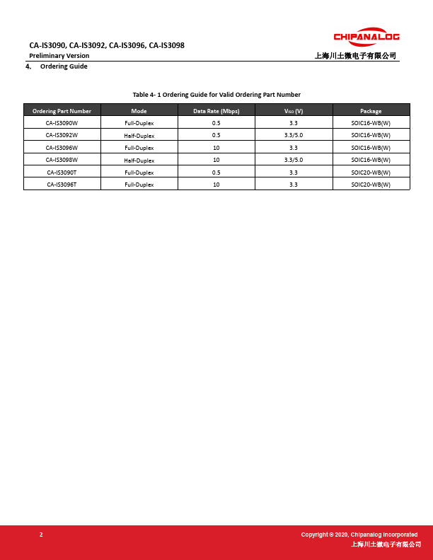 CA-IS3092 and CA-IS3098 devices are isolated half-duplex RS-485 and RS-422 transceivers with high reliability, low EMI and strong anti-interference capability from magnetic changes.