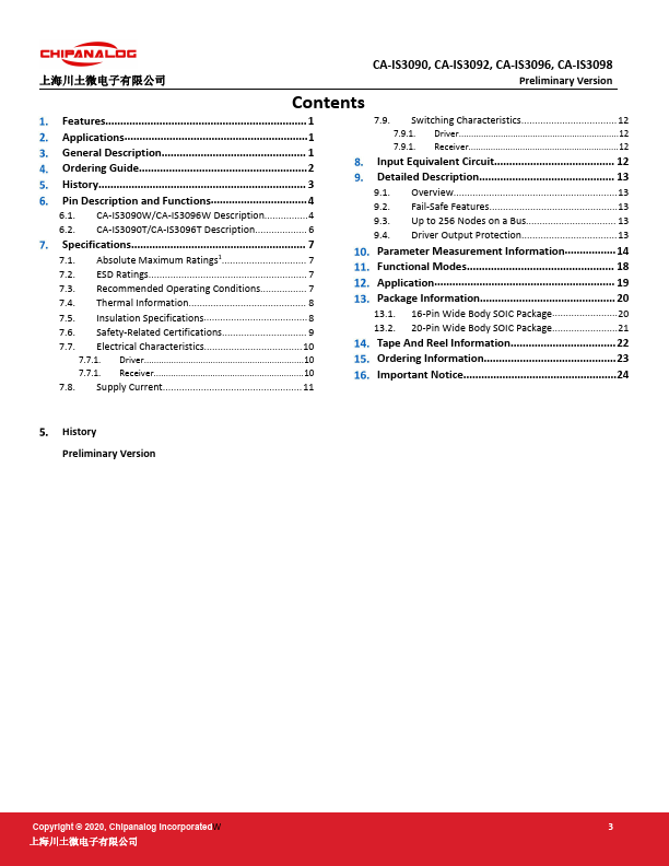 This datasheet PDF includes multiple part numbers: CA-IS3096, CA-IS3090. Please refer to the document for exact specifications by model. |