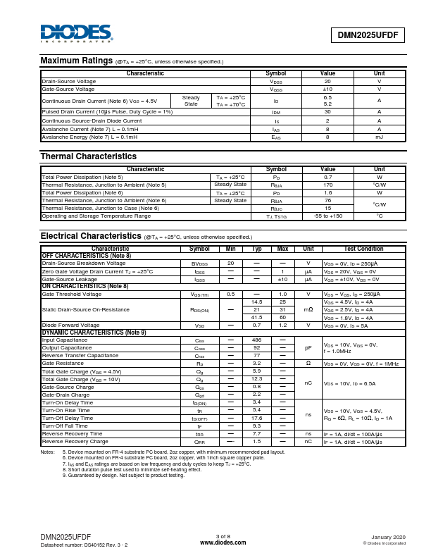 | Part number | DMN2025UFDF |