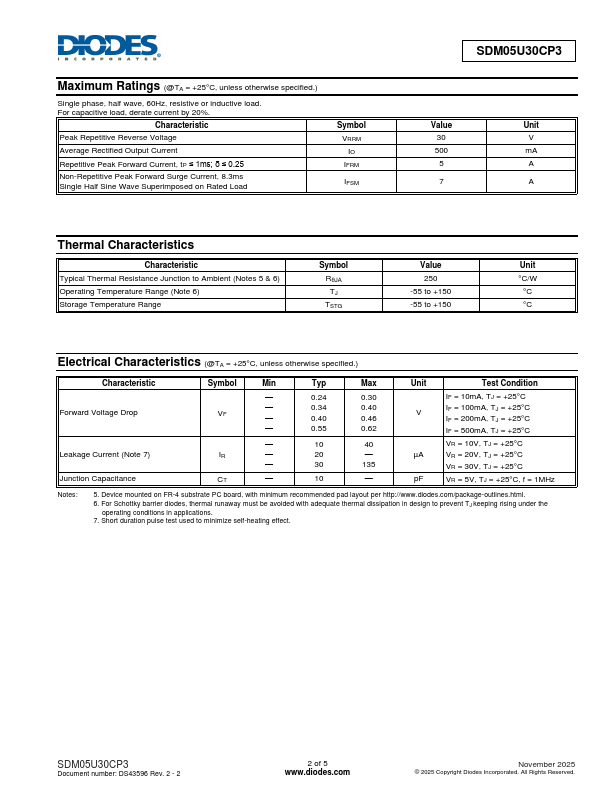 The SDM05U30CP3 is a 30-volt 500mA Schottky Barrier Diode that is optimized for very-low-forward voltage drop and low-leakage current.