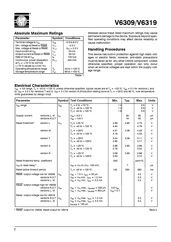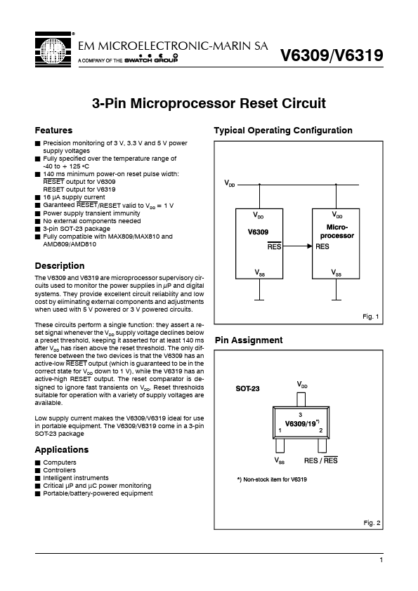 The V6309 and V6319 are microprocessor supervisory circuits used to monitor the power supplies in µP and digital systems.