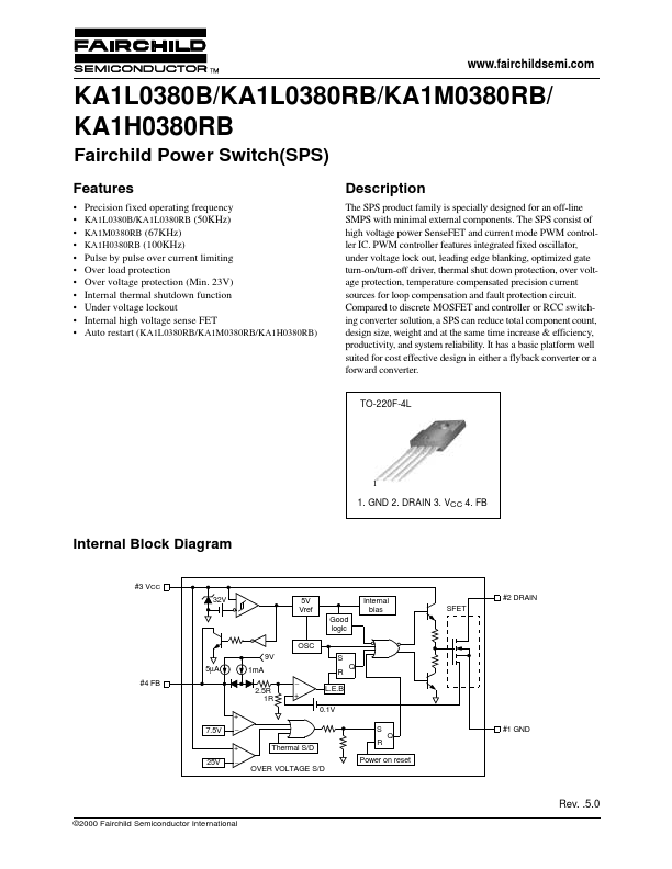 The SPS product family is specially designed for an off-line SMPS with minimal external components. The SPS consist of high voltage power SenseFET and current mode PWM controller IC.