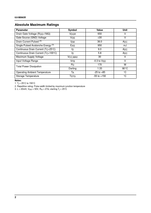 • Precision Fixed Operating Frequency (67kHz) • Pulse by Pulse Over Current Limiting • Over Load Protection • Over Voltage Protection (Min. 23V) • Internal Thermal Shutdown Function • Under Voltage Lockout • Internal High Voltage Sense FET • Auto Restart • Soft Start