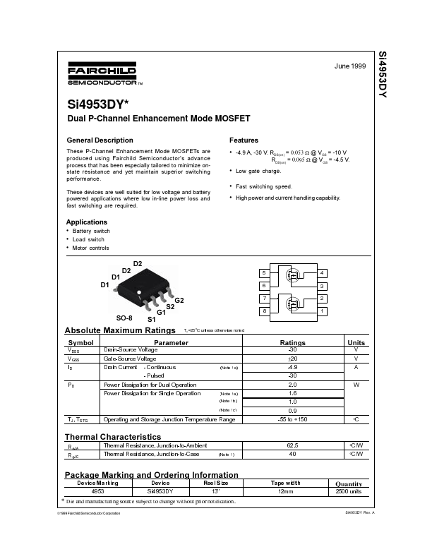 | Si4953DY | 30V Dual P-Channel MOSFET | Vishay |