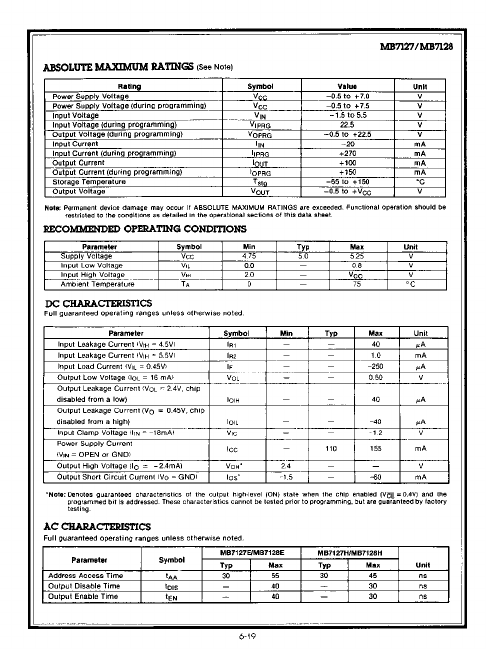 This datasheet PDF includes multiple part numbers: MB7128H, MB7127E. Please refer to the document for exact specifications by model. |
