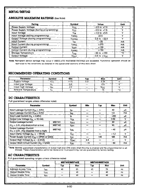 This datasheet PDF includes multiple part numbers: MB7142H, MB7141E. Please refer to the document for exact specifications by model. |
