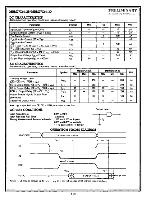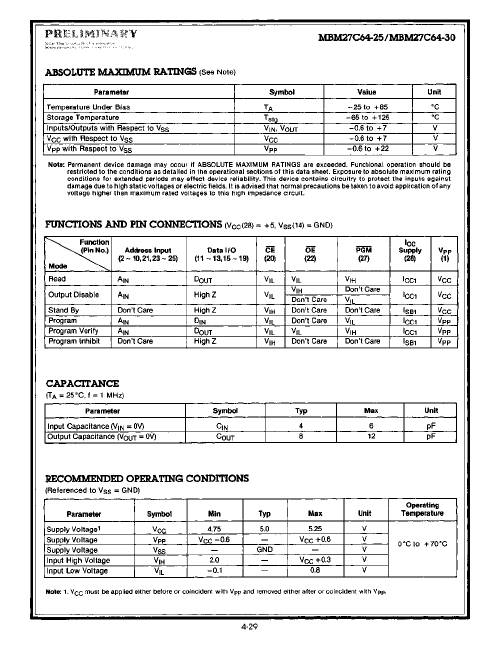 The Fujitsu MBM27C64 is a high speed 65,536-bit static Complementary MOS erasable and electrically reprogrammable read only memory (EPROM).