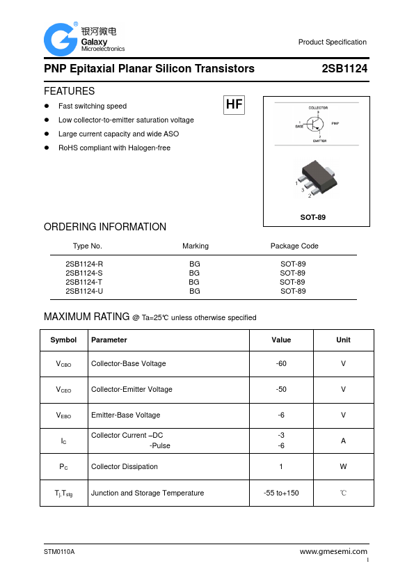 Fast switching speed Low collector-to-emitter saturation voltage Large current capacity and wide ASO RoHS compliant with Halogen-free