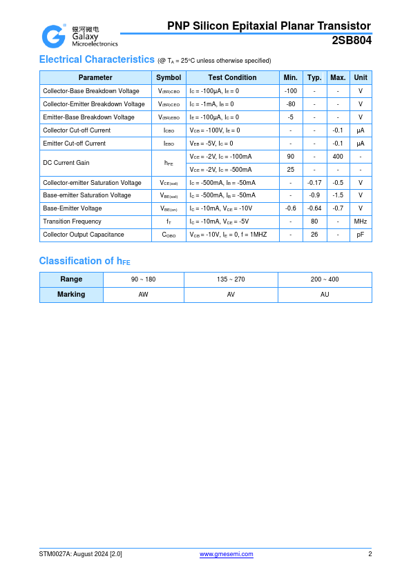 PNP Silicon Epitaxial Planar Transistor 2SB804