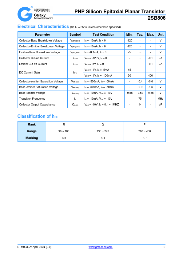 Part Number 2SB806-R 2SB806-Q 2SB806-P