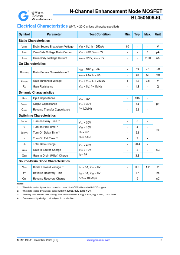 N-Channel Enhancement Mode MOSFET BL450N06-6L