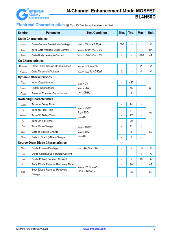 N-Channel Enhancement Mode MOSFET BL4N50D