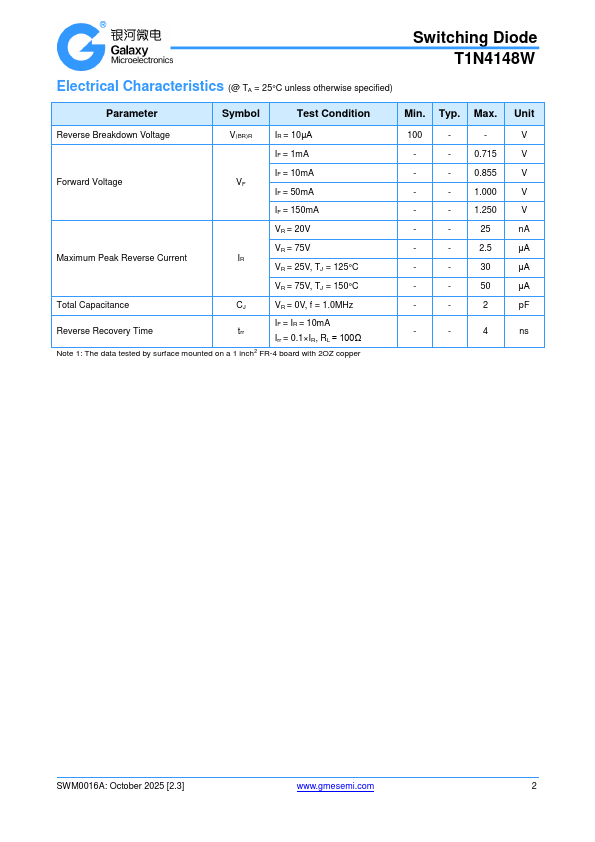 Non-Repetitive Peak Reverse Voltage Peak Repetitive Peak Reverse Voltage Working Peak Reverse Voltage DC Blocking Voltage RMS Reverse Voltage Average Rectified Output Current Peak Forward Current Peak Forward Surge Current, 1μs Single Half-sine-wave Peak Forward Surge Cur