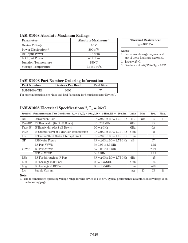 The IAM-81008 is a complete low power consumption, double balanced active mixer housed in a miniature low cost plastic surface mount package.